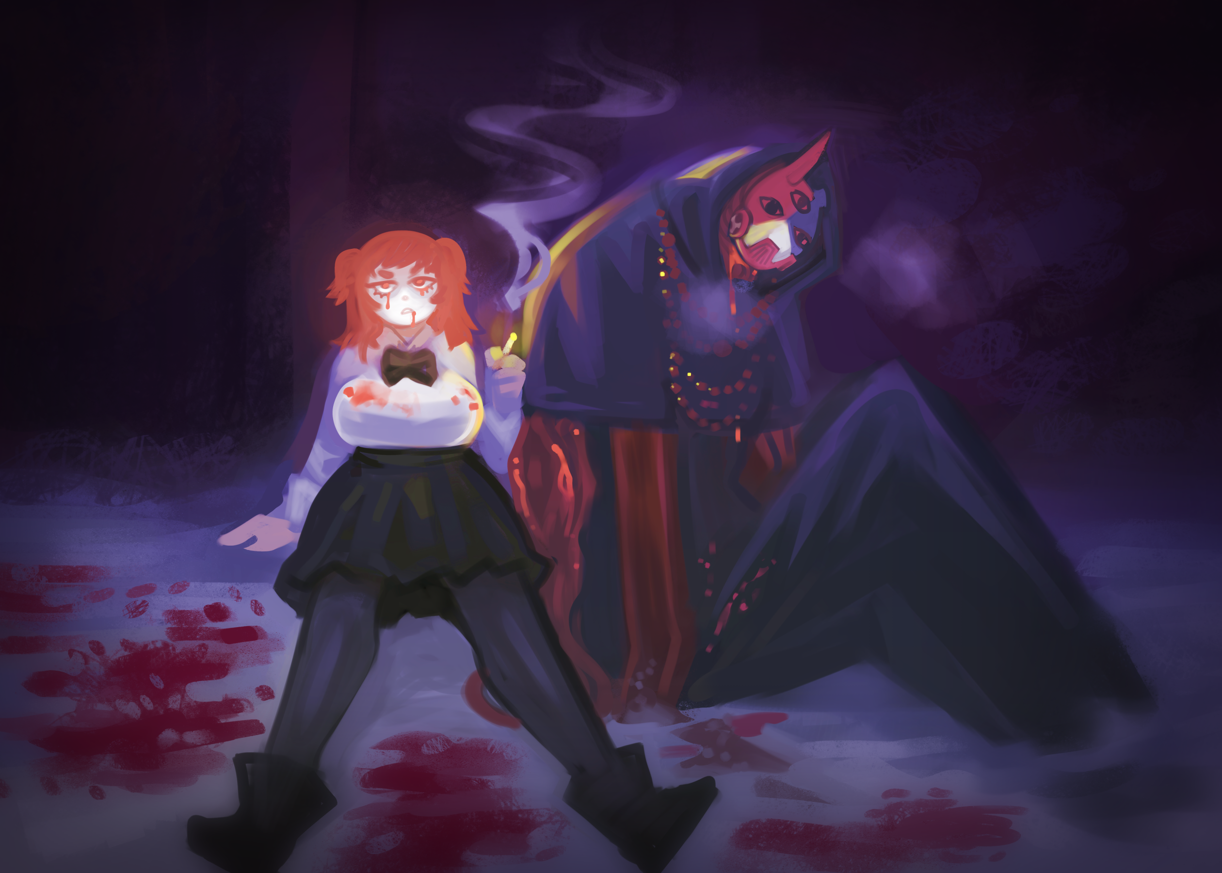 Jiko is an anomaly: she was raised within the hellish domain of the Grand Guignol, known as a place people cannot escape from. The rampant sex, violence and more sex has fostered an strong, angry repression to seem ‘above it all’- but she’s not above scamming horny would-be suitors and getting into trouble…